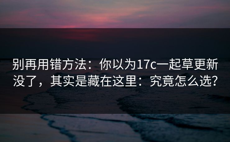 别再用错方法:你以为17c一起草更新没了,其实是藏在这里:究竟怎么选...